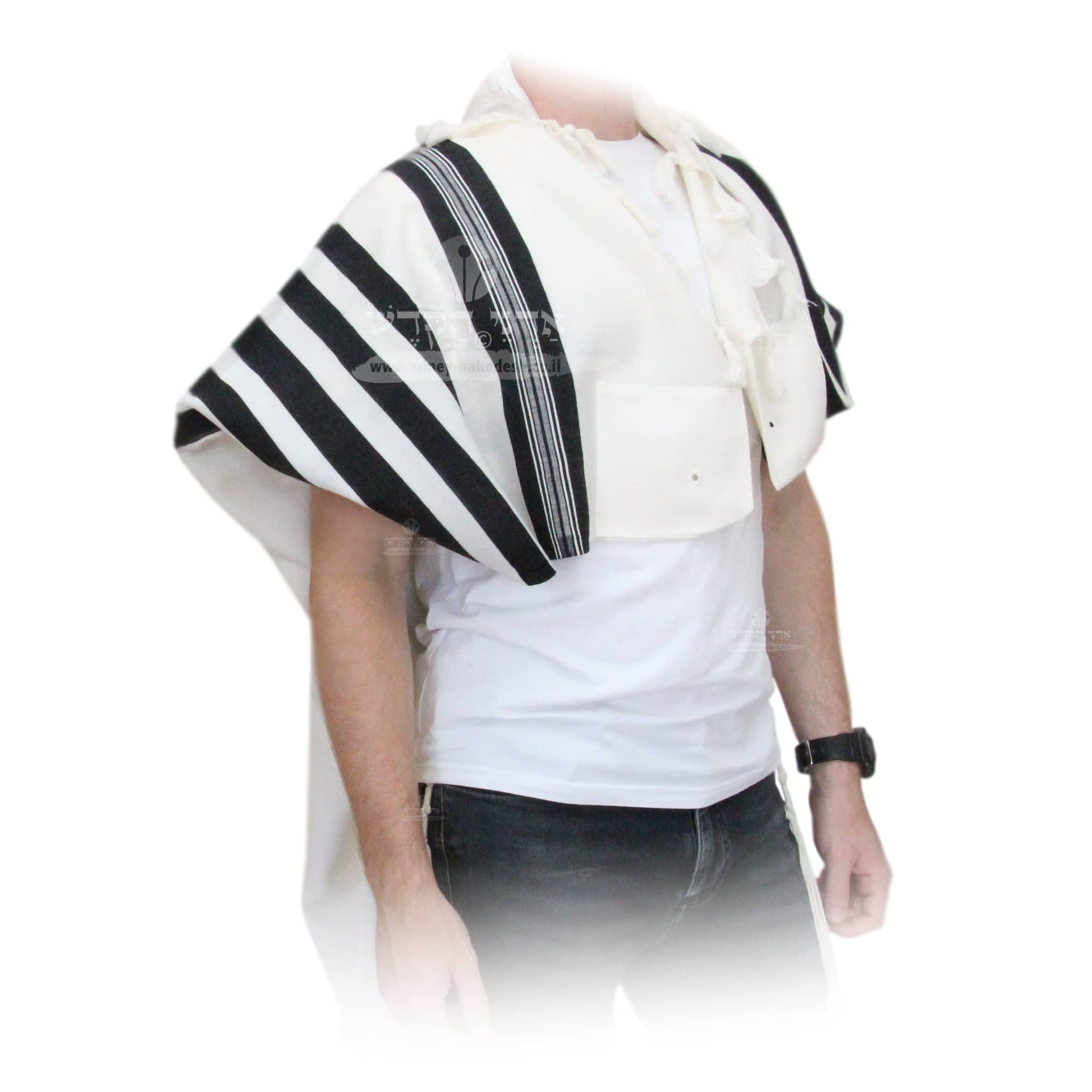 - The tallit arrives without tzitzit (fringes). Hand-crafted kosher tzitzit can be added for an additional cost.