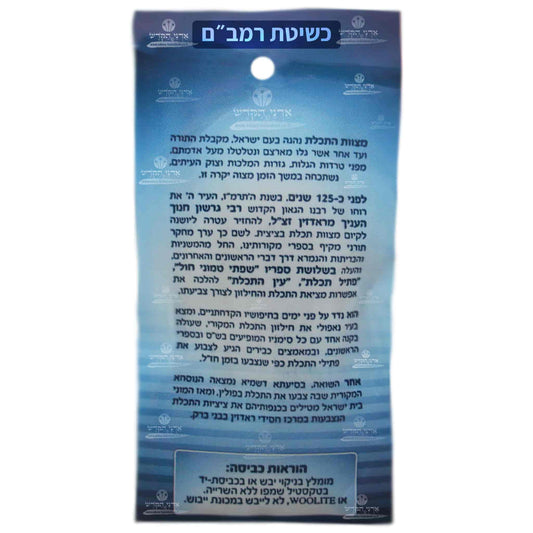 Ptil Tekhelet - Rambam 7 - Handmade Tzitzit Strings - Thick